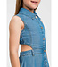 This Twinset dress is a stylish and fashionable choice for girls. It is a sleeveless denim dress, mid-length, falling just above the knee for a playful and comfortable fit. The dress features a neat collar and a button closure from top to bottom at the front. The back has a beautiful open detail, adding a unique and elegant touch. The soft denim material feels comfortable on the skin and provides plenty of ease of movement. For an extra stylish touch, a cute belt can be added (note: the belt is not included, but we have the exact belt available in our store). Perfect to pair with sneakers, sandals, or dressy shoes for a complete look. A charming and timeless dress that can be worn for both casual and special occasions.