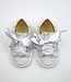 These Andanines sneakers are a stylish and festive choice for children. They come in a beautiful white color, making them easy to pair with various outfits. The large satin laces add an elegant and standout detail. The sides and top are decorated with glitter, creating a sparkling effect. The soft material feels comfortable on the feet. Perfect for parties, special occasions, or adding extra glamour to any outfit. Easy to pair with dresses, skirts, or smart trousers. Super festive shoes that complete any look.