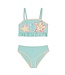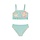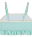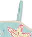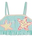 This beautiful Marc Jacobs bikini is a true eye-catcher for sunny days at the beach or pool. The bikini comes in a lovely turquoise color, creating a fresh and summery look. The top is finished with cute ruffles along the bottom, adding a playful and cheerful detail. Glittery seashells are placed on the bikini, giving a subtle sparkle and making it extra special. Made from high-quality materials, it is comfortable to wear and quick-drying. The design provides plenty of freedom of movement for active water play. Perfectly paired with the matching bottoms for a complete outfit. A super cute, stylish, and playful Marc Jacobs bikini that completes any summer look!