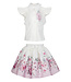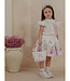 This beautiful Daga set includes a white short-sleeve blouse and a matching skirt, perfect for an elegant and playful outfit. The blouse features a subtle pink floral motif on the chest and a large tulle bow, adding a charming and standout detail. The matching skirt is fully covered with a cheerful pink floral print, giving the set a lively and festive look. The soft fabrics feel comfortable and allow for full freedom of movement. Thanks to the coordinated design, the set is easy to mix and match and always stylish. Ideal for special occasions, birthdays, or festive outings. The tulle bow and floral print make it a true eye-catching outfit. An elegant and playful ensemble that any little girl will love.