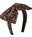 Introducing the iconic Fendi Cerchietto Fem Nylon FF in brown and black. This headband features an all-over print of the Fendi logo and a large bow. It is the perfect match for all the items from the Fendi collection. With its classic and iconic design, this headband adds a stylish touch to any outfit.