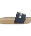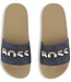 These stylish Boss slides are perfect for sunny days at the pool or beach. They feature a comfortable brown/beige sole that feels soft underfoot. The strap comes in dark blue and is decorated with the “Boss” letters in brown, white, and blue, adding a playful and eye-catching detail. Made from high-quality materials, they are durable and comfortable to wear. The practical design ensures the slides stay securely in place while walking or playing. Ideal for vacations, beach days, or casual summer outfits. The timeless colors make them easy to pair with a variety of swimwear and summer looks. A super cute, fashionable, and practical pair of Moschino slides that complete any summer outfit!
