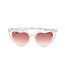 The Angel's Face sunglasses in a peach color are a fun and stylish accessory for sunny days. The peach-colored frame gives off a playful and fresh vibe. With heart-shaped pink-tinted lenses, these sunglasses add a trendy and eye-catching touch to your look. The delicate glitter stones embedded in the frame bring an extra hint of glamour. The pink lenses not only protect your eyes from the sun but also give your outfit a fashionable twist. This unique and comfortable design is perfect for those who love a bit of sparkle. A true must-have for any young fashionista!