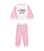 This cute Monnalisa tracksuit includes a comfortable sweatshirt and matching pants. The pants are pink with white stripes along the sides, waistband, and cuffs for a sporty look. The sweatshirt is also pink with white accents and features a fun image of Read more..