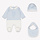 This Fendi baby set is an adorable and stylish outfit for little ones. The set includes a baby romper, a matching hat, and a bib, making it a complete and coordinated look. On the chest of the romper, there is a horse illustration in the center, with white legs and little feet, adding a playful and charming detail. The romper features a blue shirt with a white collar, giving it a soft and elegant touch. The material is super soft and gentle on delicate baby skin, providing all-day comfort. The fit is relaxed, allowing freedom of movement for the baby. Perfect for everyday wear, special occasions, or as a gift set. A lovely and fashionable baby outfit that is both cute and practical.