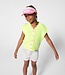 This cheerful Marc Jacobs visor is perfect for sunny days and adds a playful touch to any outfit. The visor comes in a bright pink color with a fresh green trim, making it extra eye-catching. The front is decorated with a variety of colorful motifs, including hearts, stars, and the letters “Billieblush,” creating a fun and whimsical detail. Made from high-quality materials, it is lightweight and comfortable to wear. Ideal for protecting the eyes from the sun during outdoor activities. The design ensures the visor stays securely in place without feeling tight. Perfect for vacations, playtime, or sunny outings. A super cute and colorful Marc Jacobs visor that completes any look!