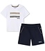 This adorable Boss set is perfect for your baby boy, combining style and comfort. The set includes dark blue shorts and a white short-sleeve T-shirt. On the chest of the T-shirt, subtle beige, white, and blue stripes feature the “Boss” letters, adding a refined and recognizable detail. Small matching accents are also found on the shorts, creating a coordinated and stylish look. Made from soft, high-quality materials, it feels gentle on delicate baby skin. The comfortable fit allows plenty of freedom of movement for everyday wear and playtime. Perfect for casual days, summer outings, or playdates. A super cute, stylish, and complete Boss set that completes any baby outfit!