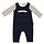 This Moncler baby outfit is a comfortable and stylish choice for little ones. It includes a white long-sleeve shirt with dark blue stripes, creating a playful and classic look. Over it, there is a dark blue babygrow with white Moncler lettering on the Read more..