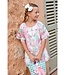 This Angels Face set is a fresh and summery outfit, perfect for warm days. The set includes a top and matching shorts, both crafted in beautiful lace. The combination of white, pink, and turquoise gives the set a cheerful and playful look. The delicate lace adds an elegant and stylish touch. A white bow on the top serves as a sweet and subtle detail. Made from lightweight and breathable materials, the set is comfortable to wear all day. Ideal for holidays, parties, or a sunny day outdoors. A charming and summery set that will make any girl shine.