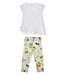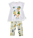 This Monnalisa set is a cheerful and playful outfit, perfect for girls. The set includes leggings in a soft green shade, decorated with flowers, lemons, and Tinkerbells, giving it a fresh and magical look. The matching white T-shirt falls slightly longer and features short sleeves with a Tinkerbell print and sparkling details for a fun, glittery effect. Made from soft, high-quality materials that feel gentle on the skin and provide all-day comfort. The leggings have an elastic waistband for a flexible fit and plenty of freedom of movement. Both the T-shirt and leggings are easy to put on and take off. Perfectly paired with sandals or sneakers for a complete outfit. A charming and joyful set that will make any little girl shine.