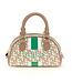 This stylish Guess bag is the perfect accessory for any occasion. The small bag features a beautiful light brown color and is covered with a white Guess print, giving it a luxurious look. The front is decorated with two green stripes and the Guess logo, adding a bold and modern touch. Despite its compact size, the bag offers enough space for your essentials, making it ideal for a night out or a shopping day. Its elegant design makes it easy to pair with various outfits. The high-quality finish ensures a durable and fashionable look. With this chic and edgy Guess bag, you’ll always make a statement!
