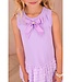 This Angels Face dress is a beautiful and playful piece, perfect for parties or special occasions. The dress comes in a lovely light purple color, radiating a cheerful and feminine vibe. Horizontal tulle stripes at the hem add a graceful and airy touch. A large purple bow on the chest makes the dress extra cute and girly. Made from soft, high-quality materials that feel comfortable on the skin. The dress has a comfortable fit and falls elegantly with every movement. Ideal for birthdays, celebrations, or a fun day out. A charming and joyful dress in which any girl will shine.
