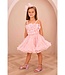 This Angels Face set is a true dream for every little fashionista. The set features a beautiful light pink tulle skirt with subtle glitter woven throughout, creating a magical sparkle. The skirt has a wide, flowy fit that moves gracefully with every step. The matching top is designed with layered tulle in a floral-inspired shape covering the entire front, giving it a playful and unique look. The delicate spaghetti straps are also pink with a touch of glitter, perfectly complementing the set. A soft lining ensures comfortable wear throughout the day. Ideal for parties, birthdays, or other special occasions. A magical and stylish outfit in which every girl will shine.