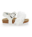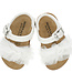 These Monnalisa sandals are a stylish and cheerful choice for girls. The sandals feature white glitter straps that add a sparkling effect. The front strap is decorated with white tulle, giving a playful and elegant touch. Multiple holes in the straps allow the sandals to be adjusted for a snug or looser fit. The comfortable design ensures a good fit and plenty of wearability. Perfect for warm summer days or festive occasions. The sandals pair easily with dresses, skirts, or shorts. Fun and fashionable shoes that complete any outfit.