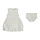 This beautiful pearl-white Guess dress is perfect for little girls. The dress is sleeveless, making it ideal for warm summer days. Around the waist, there is an elegant white bow, giving the dress a cute and festive touch. The dress comes with matching underwear, making it ready to wear. The soft and comfortable material ensures your baby feels great all day long. Perfect for summer outings, parties, or special occasions. Its timeless design makes it easy to pair with different shoes and accessories. A super cute and stylish dress that should not be missing from your baby girl’s wardrobe.