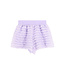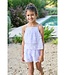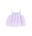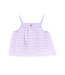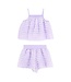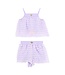This Angels Face set is a dreamy and stylish outfit, perfect for sunny days. The set includes a pair of shorts and a matching top in a beautiful light purple color. Both pieces are finished with horizontal tulle stripes, creating a playful and elegant look. The top features delicate spaghetti straps for a light and summery feel. A small, subtle silver bow decorates both the top and the shorts, adding a refined detail. Made from soft materials for a comfortable fit. Ideal for parties, holidays, or special occasions. A charming and stylish set in which every girl can shine.