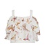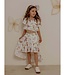 This beautiful set from Daga is perfect for a dreamy and elegant look. The white top features delicate straps and multiple layers of fabric, creating a soft and playful effect. It is fully decorated with pink and gold butterflies, giving it a magical and stylish touch. The matching skirt is designed with a short front and a longer back, adding a trendy and airy silhouette. The skirt is finished with ruffles, which enhance its feminine and romantic look. Both pieces are covered in the same beautiful butterfly print, making the set perfectly coordinated. Made from soft and comfortable materials that feel gentle on the skin and are ideal for special occasions. A super charming and elegant set in which your little girl will shine beautifully.