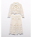 This festive Abel & Lula set is perfect for young girls who want to look stylish. The set includes a beautiful blouse made entirely of cream-colored lace. The long pants are partially sheer and feature a short underlayer in the same cream lace. Both the blouse and the pants are adorned with a delicate floral print, adding an elegant touch. Soft materials ensure a comfortable fit, even during special occasions. The intricate lace and refined details make this set truly special and festive. Ideal for weddings, parties, or any other memorable events. A chic and elegant choice for young girls who appreciate quality and design.