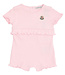This Moncler baby romper is an adorable one-piece outfit, perfect for warm summer days. It features short sleeves and shorts for a light and comfortable fit. The beautiful pink color gives it a cheerful and summery look. Frilly trims on the waist, sleeves, and legs add an extra touch of charm and style. The iconic Moncler logo on the chest adds a luxurious detail. Made from soft, high-quality materials for maximum comfort. Ideal for everyday wear or special summer occasions. A cute and stylish set that will make your little one shine.