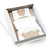 Deze schattige set van First is perfect voor pasgeboren baby’s. Het babypakje is uitgevoerd in een zachte witte kleur en heeft een schattig berenhoofdje in beige op de achterkant, precies op de billen. Het pakje is afgewerkt met een beige kraagje, handige zakjes en voetjes voor extra warmte. Gemaakt van heerlijk zacht materiaal dat comfortabel aanvoelt op de babyhuid. De set wordt compleet geleverd met een witte slab waarop ook een beige berenhoofdje staat afgebeeld. Daarnaast zit er een bijpassende beige deken bij, ideaal om je kleintje lekker in te wikkelen. Deze set is zowel stijlvol als praktisch voor de eerste maanden. Een prachtig kraamcadeau of startset voor je eigen baby.