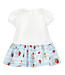 Deze Monnalisa jurk is een vrolijk en zomers jurkje, perfect voor kleine meisjes. Het bovenstukje is een wit T-shirt met korte mouwen en heeft een schattige afbeelding van Winnie the Pooh, omringd door aardbeien en witte bloemen, wat het geheel extra speels maakt. De rok is aan het shirt vastgemaakt en heeft witte en lichtblauwe strepen met daarop een print van aardbeien, wat zorgt voor een frisse en zomerse uitstraling. Gemaakt van zachte, hoogwaardige materialen die comfortabel aanvoelen op de huid van je kleintje. Het jurkje heeft een fijne pasvorm en biedt veel bewegingsvrijheid, ideaal voor dagelijks gebruik of zomerse uitjes. Makkelijk te combineren met sandalen of schoentjes voor een complete look. De vrolijke kleuren en prints maken het jurkje extra charmant en uniek. Een lief en speels jurkje dat elke kleine meid er schattig en stijlvol uit laat zien.