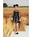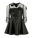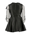 Deze elegante zwarte jurk van Elisabetta Franchi is perfect voor een feestelijke gelegenheid. Het ontwerp is gemaakt van zwart imitatieleer, wat een luxe uitstraling geeft, terwijl de doorzichtige mouwen van zwart kant met bloemen een verfijnd detail toevoegen. De combinatie van het imitatieleer en kant zorgt voor een unieke balans tussen stoer en vrouwelijk. De doorzichtige mouwen geven de jurk een speelse en verfijnde touch, waardoor het de ideale keuze is voor een avondje uit of een speciale gelegenheid. De jurk biedt zowel stijl als comfort en is gemakkelijk te combineren met elegante accessoires. Het zwarte ontwerp maakt het veelzijdig, waardoor het geschikt is voor verschillende feesten en evenementen. Een tijdloze en chique jurk die absoluut niet mag ontbreken in je garderobe.