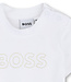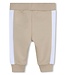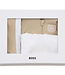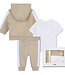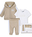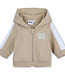 Houd je kleintje comfortabel en stijlvol met dit joggingpakje van Boss. Het setje bestaat uit een vestje met rits en capuchon in een warme bruin-beige kleur, een bijpassend joggingbroekje en een wit T-shirt met korte mouwen. Het zachte en ademende materiaal voelt heerlijk aan op de gevoelige huid van je baby. Het vestje met rits is makkelijk aan- en uit te trekken, ideaal voor dagelijks gebruik. De joggingbroek heeft een elastische tailleband voor een perfecte pasvorm en bewegingsvrijheid. Het witte T-shirt maakt de set compleet en zorgt voor een frisse, zomerse touch. Samen vormt het een praktische en comfortabele outfit voor elke dag. Een stijlvolle en veelzijdige toevoeging aan de garderobe van je babyboy.