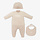 Dit schattige babypak van Fendi is de perfecte keuze voor je kleintje. Het beige pak heeft lange mouwen en voetjes, waardoor het comfortabel en praktisch is. De onderkant van het pak is versierd met de iconische Fendi all-over print, wat het een luxe uitstraling geeft. De bovenkant is eenvoudig beige met witte Fendi-letters, wat een stijlvol contrast creëert. Het setje wordt compleet geleverd met een bijpassend mutsje en een slab, zodat je kleintje er van top tot teen trendy uitziet. Gemaakt van hoogwaardige materialen, biedt dit babypak zowel comfort als stijl. Het ideale cadeau voor jonge ouders die hun baby in de meest modebewuste outfit willen steken.