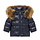 Deze donkerblauwe Moncler jas heeft een glanzende afwerking die meteen opvalt. De jas is voorzien van een capuchon met een zachte imitatiebontkraag voor extra warmte en stijl. Met de ritssluiting trek je de jas gemakkelijk aan en uit. Er zijn twee ruime zakken onderaan en een handige borstzak voor je essentials. Het iconische Moncler-logo siert subtiel de schouder. Deze jas is unisex, geschikt voor zowel jongens als meisjes. Gemaakt van hoogwaardige materialen die beschermen tegen kou en wind. Een stijlvolle en praktische keuze voor elk seizoen.