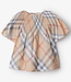 Deze zomerse top van Burberry is een perfecte keuze voor modebewuste kinderen. Het heeft korte pofmouwen die een speelse en charmante uitstraling geven. De top is volledig bedekt met de lichte Burberry print, wat zorgt voor een frisse en tijdloze look. Het ontwerp loopt onder iets wijder uit, wat voor een comfortabele en luchtige pasvorm zorgt. De zachte stof voelt fijn aan op de huid en biedt veel bewegingsvrijheid. Deze top is ideaal voor warme zomerdagen en kan gemakkelijk gecombineerd worden met verschillende onderkleding. Een must-have voor kinderen die houden van een stijlvolle en verfijnde uitstraling.