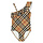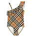 Dit prachtige badpak van Burberry combineert elegantie met een speelse twist. Het badpak is volledig uitgevoerd in de iconische Burberry-print, wat zorgt voor een tijdloze en luxe uitstraling. Het asymmetrische ontwerp maakt het uniek: één schouder heeft een fijn, dun bandje, terwijl de andere schouder voorzien is van een bredere band met speelse ruches. Gemaakt van hoogwaardige en comfortabele materialen, is dit badpak perfect voor zonnige dagen aan het strand of bij het zwembad. De perfecte mix van stijl en comfort. Een must-have voor wie houdt van modieuze en opvallende zwemkleding. Met dit Burberry badpak maak je zeker een statement!