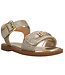 Deze prachtige sandalen van Michael Kors zijn uitgevoerd in een schitterende gouden kleur met glitters, perfect voor een feestelijke of zomerse look. De sandalen hebben een voorste band met klittenbandsluiting, waardoor ze makkelijk aan- en uit te trekken zijn. De achterste sluiting heeft meerdere gaatjes, zodat de sandaal perfect op de voet kan worden aangepast. Het comfortabele materiaal voelt zacht aan en biedt veel draagcomfort voor de hele dag. Dankzij het stijlvolle ontwerp zijn de sandalen eenvoudig te combineren met jurkjes, rokjes of shorts. Ideaal voor speciale gelegenheden, feestjes of zomerse uitstapjes. Het glitterdetail geeft een speelse en luxe uitstraling. Een modieuze en praktische sandaal die niet mag ontbreken in de garderobe.