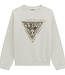 Deze stijlvolle sweater van Guess is een echte must-have voor je garderobe. De trui is uitgevoerd in een frisse witte kleur die gemakkelijk te combineren is. Op de borst prijkt het iconische Guess-logo in de vorm van een omgekeerde driehoek. Het logo is versierd met een opvallende panterprint en afgewerkt met een elegante gouden rand. In het midden staan de klassieke witte Guess-letters, wat zorgt voor een chique contrast. De sweater is gemaakt van zacht en comfortabel materiaal, ideaal voor dagelijks gebruik. Dankzij de moderne pasvorm oogt hij zowel casual als trendy. Een perfecte mix van sportieve flair en luxe uitstraling.