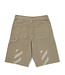 Deze stoere korte broek van Off-White is perfect voor jongens die van een trendy en speelse look houden. De broek is uitgevoerd in een legergroene kleur en gemaakt van stevige spijkerstof, wat zorgt voor een casual en robuuste uitstraling. Op de onderkant zijn kleine patchjes geborduurd in rood, blauw, geel en groen, wat een vrolijk en kleurrijk detail toevoegt. Op de achterkant van de broek, aan de onderkant, zijn in een lichtere groene kleur de Off-White strepen geplaatst voor een herkenbare streetwear touch. Het korte model biedt veel bewegingsvrijheid en comfort tijdens warme dagen of actieve momenten. Gemaakt van hoogwaardige materialen die zowel stevig als prettig aanvoelen op de huid. Ideaal te combineren met het bijpassende legergroene jasje voor een complete en stijlvolle outfit. Een super stoere en modieuze korte broek die elke look een echte Off-White uitstraling geeft.