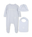 Deze luxe babyset van Givenchy is een perfecte keuze voor de allerkleinsten. Het setje bestaat uit een lichtblauw babypakje met daarop de witte Givenchy-letters, wat zorgt voor een stijlvolle en schattige uitstraling. Het zachte, comfortabele materiaal is ideaal voor de gevoelige babyhuid. Bij het pakje hoort een bijpassend mutsje dat zorgt voor extra warmte en bescherming. Ook wordt er een slabbetje meegeleverd, handig tijdens het voeden en tegelijkertijd stijlvol. Deze complete set biedt zowel comfort als mode, en is een perfecte gift voor kersverse ouders. Een prachtige toevoeging aan de babyuitzet voor een luxe uitstraling.