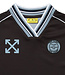 Dit stoere baseball T-shirt van Off-White is perfect voor jongens die van een sportieve en trendy look houden. Het T-shirt is uitgevoerd in een klassieke zwarte kleur en heeft korte mouwen voor optimaal draagcomfort. De kraag is afgewerkt met blauwe strepen, wat het shirt een sportief detail geeft. Op de voorkant staat het kleine Off-White logo in blauw, subtiel maar stijlvol. Op de achterkant zijn de Off-White letters in blauw afgebeeld, wat zorgt voor een opvallend en herkenbaar detail. Gemaakt van zachte, hoogwaardige materialen die prettig aanvoelen op de huid. De comfortabele pasvorm biedt veel bewegingsvrijheid, ideaal voor dagelijks gebruik of actieve dagen. Een super stoer en modieus baseball T-shirt dat elke outfit een sportieve Off-White touch geeft.