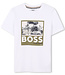 Dit witte t-shirt van Boss heeft een sportieve uitstraling. Het t-shirt heeft korte mouwen, ideaal voor de warme dagen. Op de borst bevindt zich een donkergroen vlak met daarop het Boss-logo in witte letters. Daarnaast is er een afbeelding van een auto, wat het t-shirt een extra stoere en trendy touch geeft. Het is gemaakt van zachte, comfortabele stof die de hele dag prettig draagt. De pasvorm is modern en zorgt voor een strakke look. Dit t-shirt is een perfecte keuze voor een casual outfit met een unieke twist.