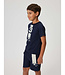 Deze stoere donkerblauwe set van La Martina is perfect voor actieve jongens. Het setje bestaat uit een korte broek en een t-shirt met korte mouwen, beide gemaakt van comfortabele joggingstof. De donkerblauwe kleur geeft het een sportieve uitstraling, terwijl de witte print zorgt voor een speels accent. Het is een veelzijdige outfit die ideaal is voor dagelijks gebruik of sportieve activiteiten. De zachte stof biedt optimaal draagcomfort, zelfs op warme dagen. Een trendy en praktisch setje voor jongens. Perfect te combineren met sneakers voor een complete look!